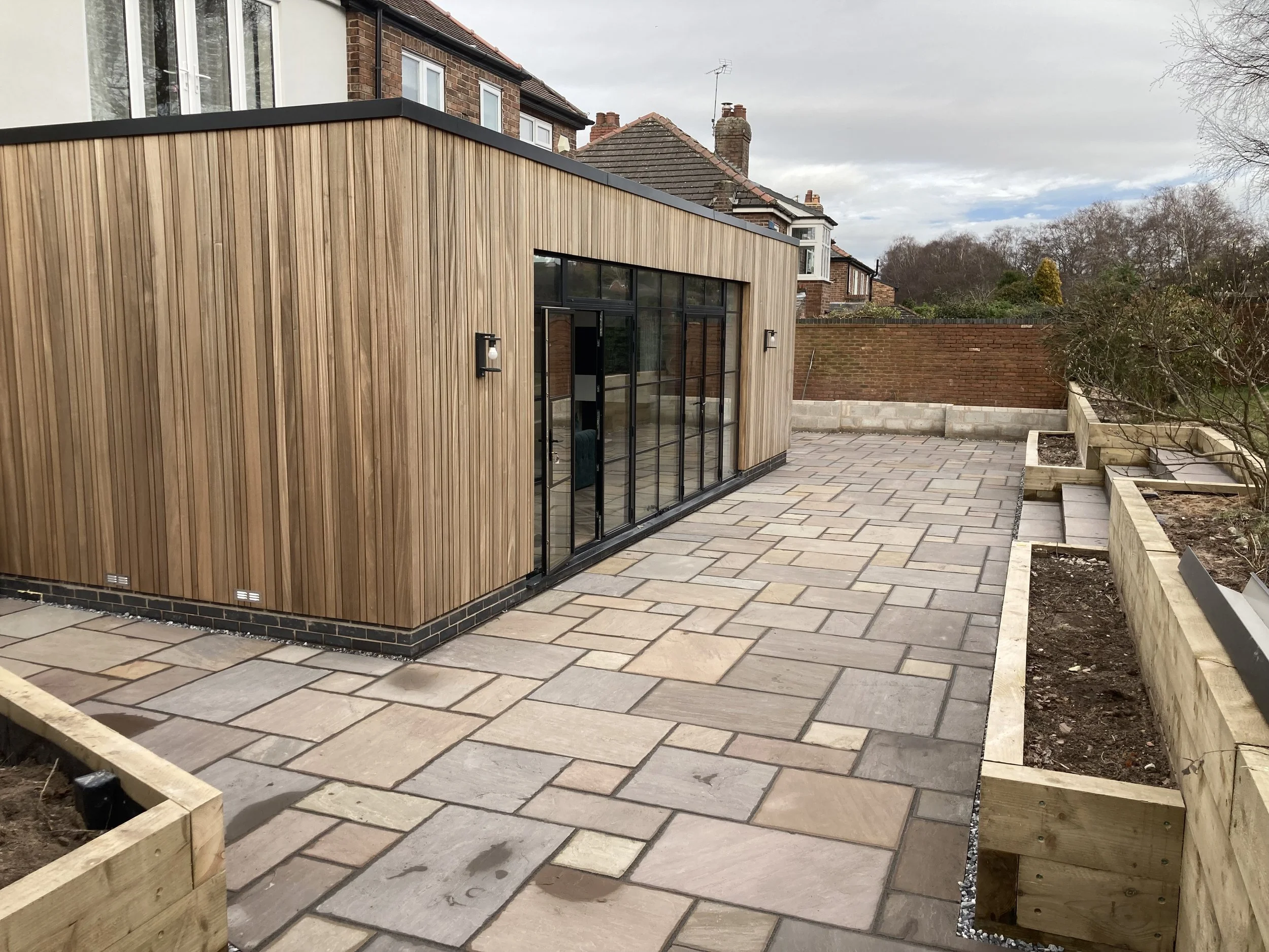 Inside, we designed a spacious open-plan kitchen, dining, and living area— perfect for a contemporary family life. Floor-to-ceiling windows fill the space with natural light, enhancing the warm, open feel of the new extension.